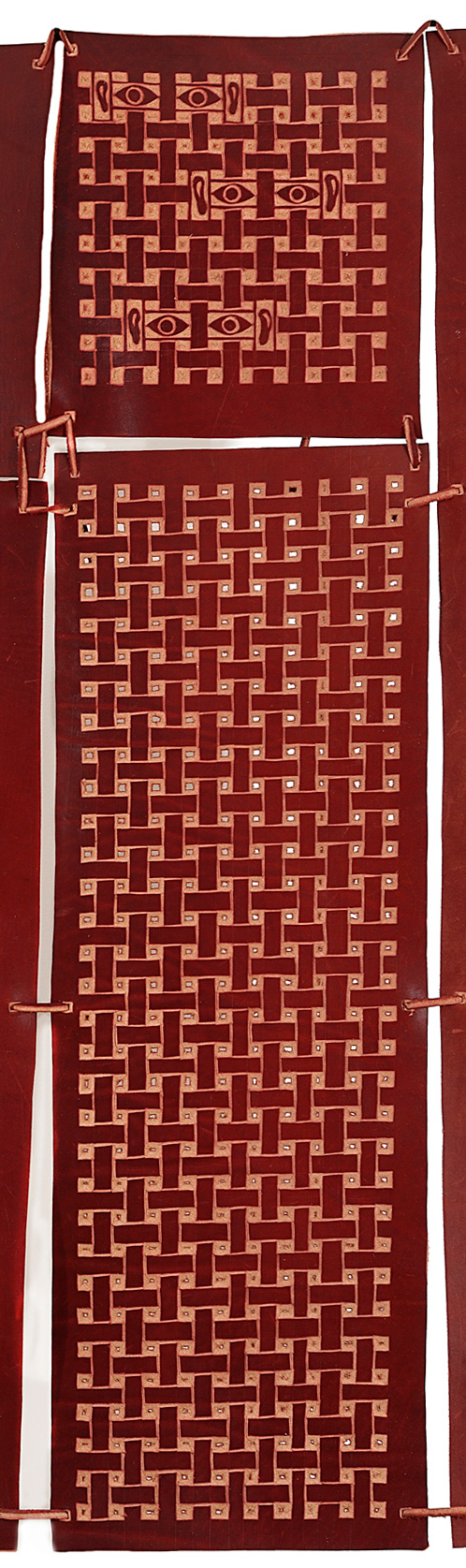 This second section is divided into top (ears ad eyes) and sections and is the companion panel to the fourth panels. They are the same design, but this panel is carved in the positive while the fourth is carved in the negative. These panels are a reflection on both the world that our senses perceive as well as the world that they do not.