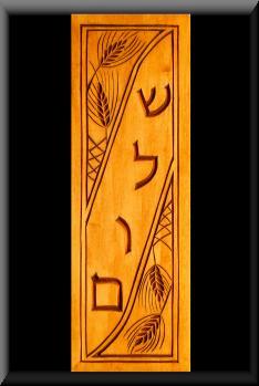 Shalom Plaque- In Barley with "SHALOM" carved in Hebrew.